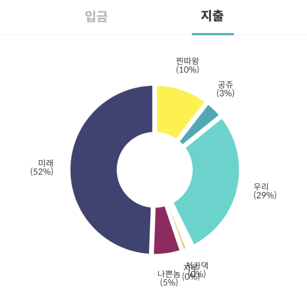제가 생각보단 많이 썼네요? 일반적으로 제가 용돈을 30만원 쓰면 한 5%(와이프 월급 포함했을 경우)정도 사용해야 하는데 무려 2배나 더 썼습니다. 핑계를 되자면 블로그를 시작하기 위해 노트북을 샀습니다. 무지 비싼 걸로.... 그래도 이번 달에는 투자를 많이 했네요. 돈은 없었지만 다행히 DC 반기 입금액이 들어와서 반강제로 투자하게 되었습니다.