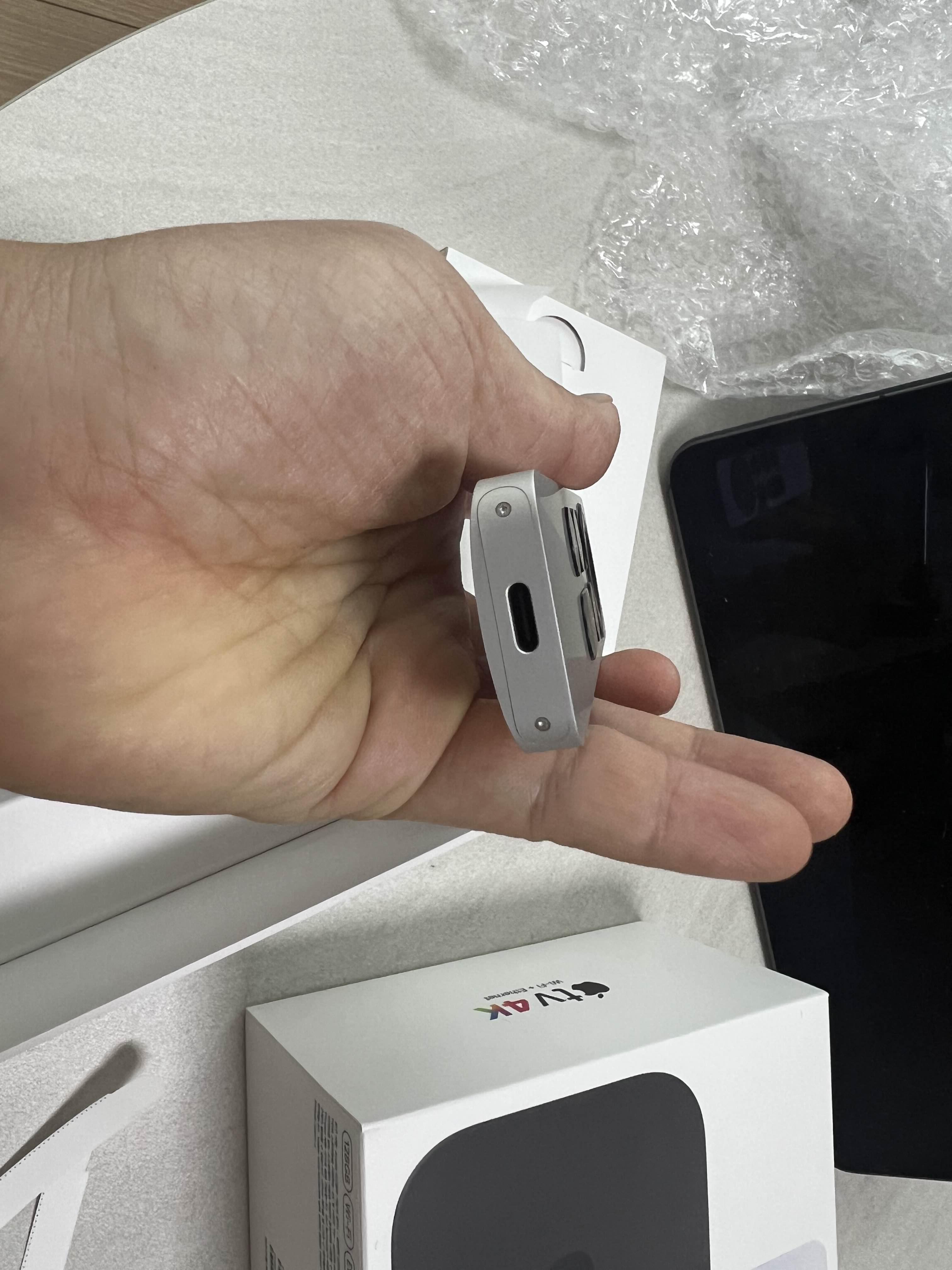 애플의 제품 답게 이것 역시 깔끔하다. 사진이 이상하게 더럽게 나왔지만 하단에 스크래치는 없습니다. 사기 전에 체크 했지만, 배터리 형태가 아니라 충전식이다. 저는 개인적으로 중요한 사항이라고 생각합니다. 게다가 USB-C 타입을 지원하기 때문에 미래에 아이폰15 이상을 살 경우 차츰 라이트닝을 버릴 수 있게 될 것 같다. 그리고 사진을 찍지 않았지만 오른쪽에 음성 인식 버튼이 있어서 누르면 음성으로 검색할 수 있습니다.
