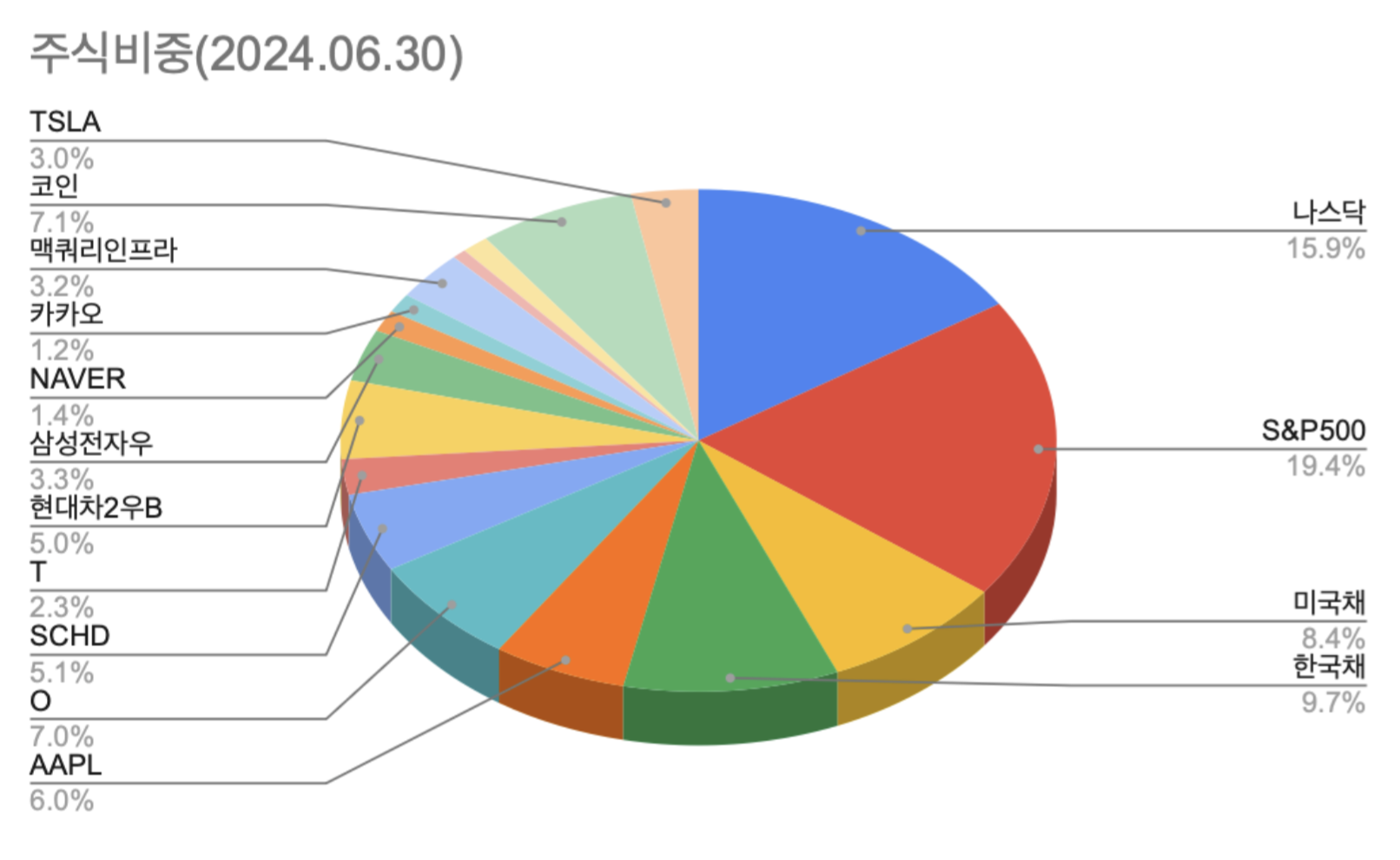 7월부터는 돈이 들어오면 채권부터 사서 비중을 맞추고, 연말 쯤에 배당락일이 모여있는 국주 비중을 조금 높여야겠습니다.