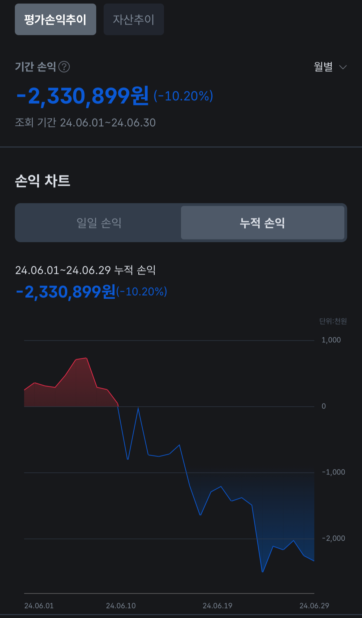 24년 6월은 코인이 다소 떨어졌지만, 미국장이 좋아서 최고의 성과를 달성한 달이 되었습니다.