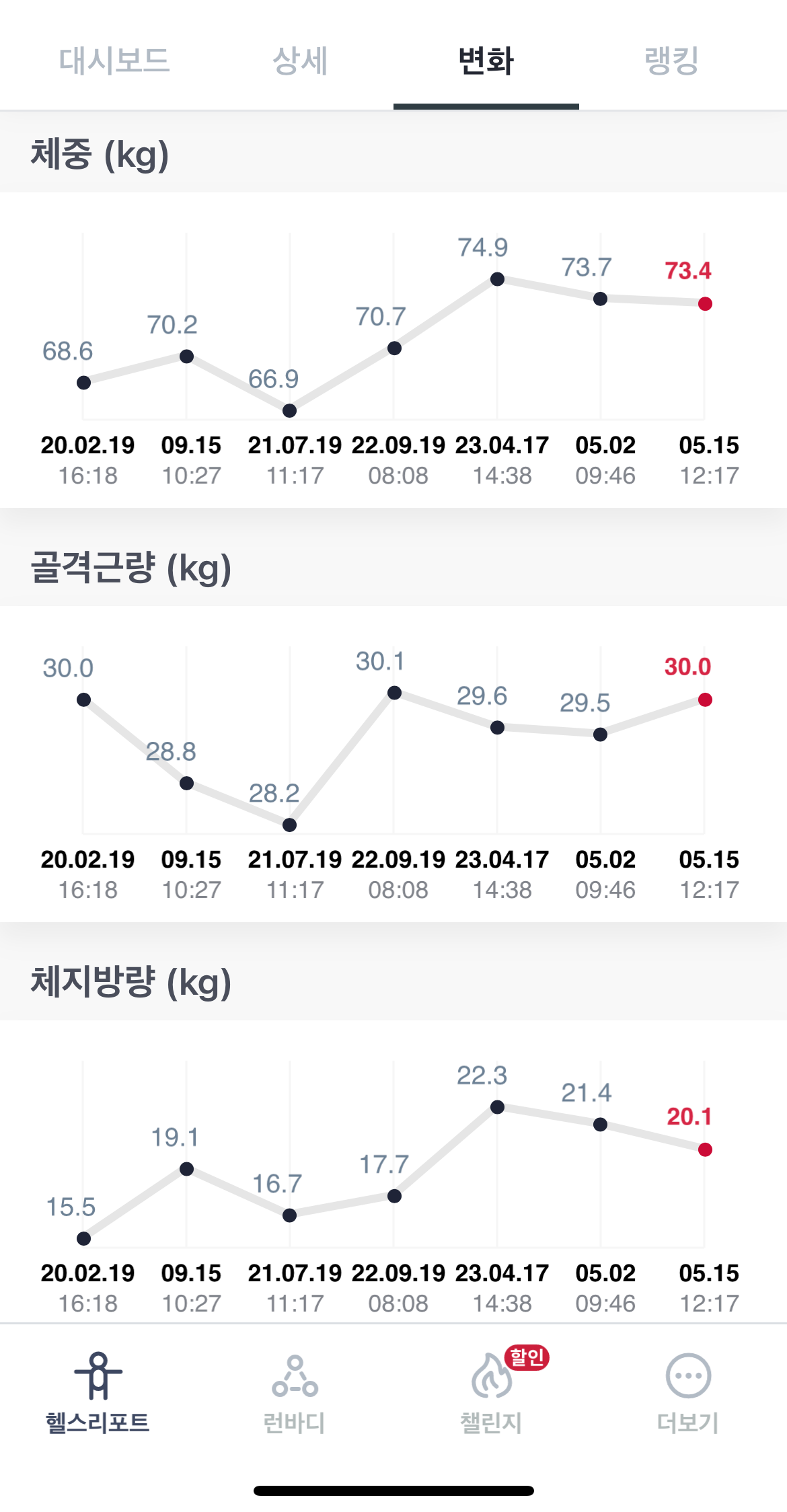- 체지방율을 20% 미만으로 만든다. 얼마 전에 회사 양호실을 갔다가 우연히 체성분 분석을 했는데, 충격을 받았다. 다행히 30%를 넘지 않았다. 이대로 가면 안된다. 곱게 안죽을 것 같다.