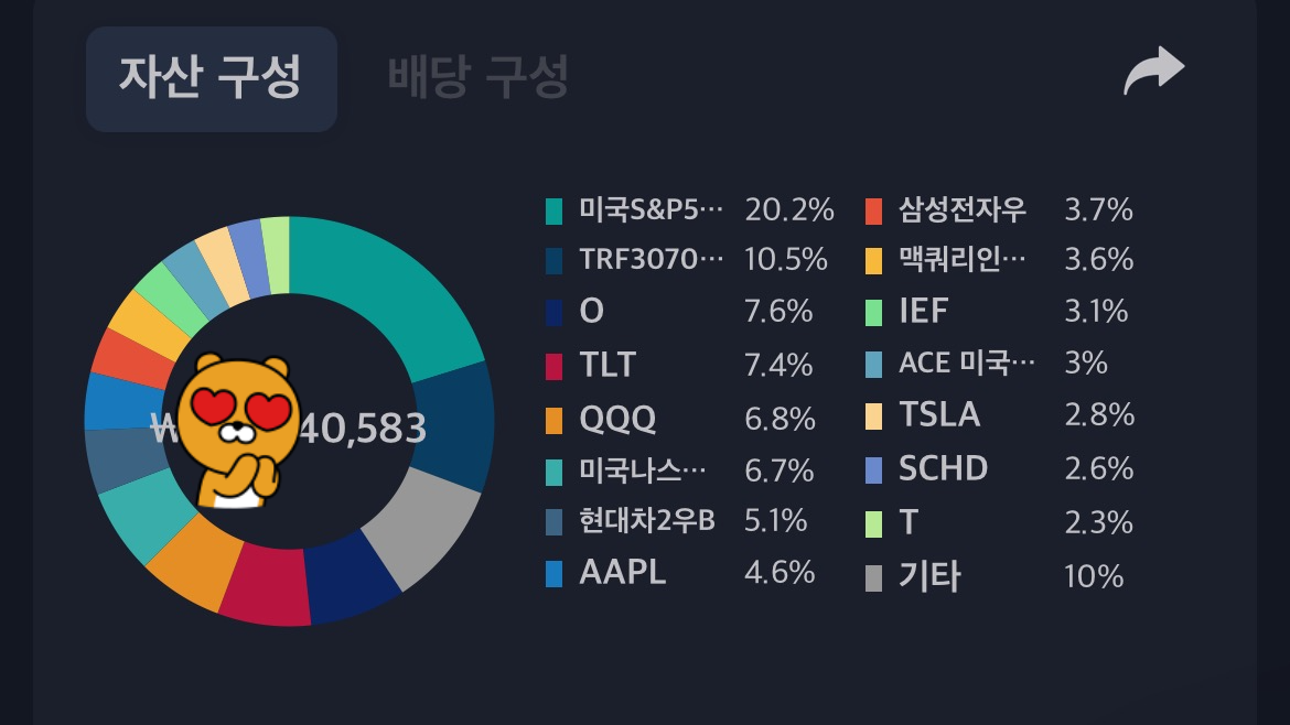 오늘 와서 알게 되었는데, 미국 국채 ETF가 떨어져서 채권 비율이 내려간지 알았는데, TRF3070를 사서 그런지 20%가 넘어간 것 같네요.