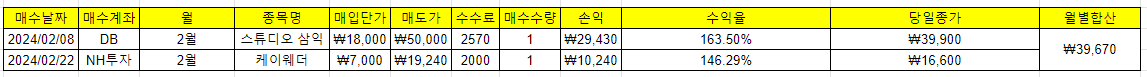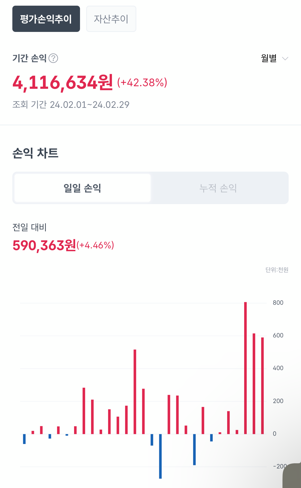 24년 2월은 주식도 적당히 오르고, 코인이 대박?이 나서 꽤 짭잘한 달이 되었습니다. 다음에도 이 행운이 계속 되기를.....