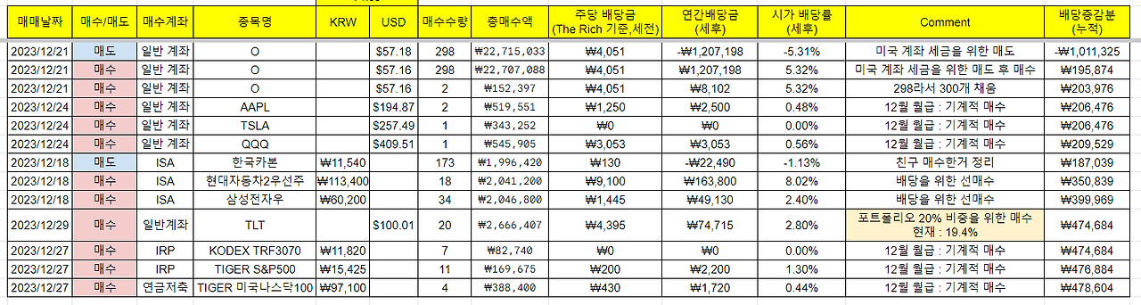 그래서 주식을 정리해야 하는 일이 생기고, 배당금에 대한 세금 또한 적용받지 못했습니다.
