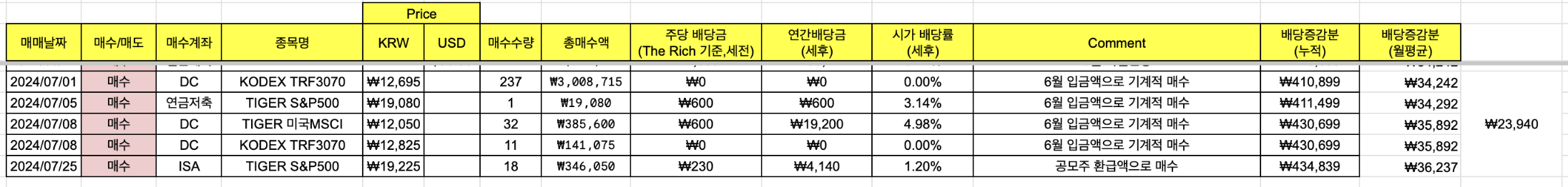 7월달 배당 증가분에 대해 체크해보겠습니다.