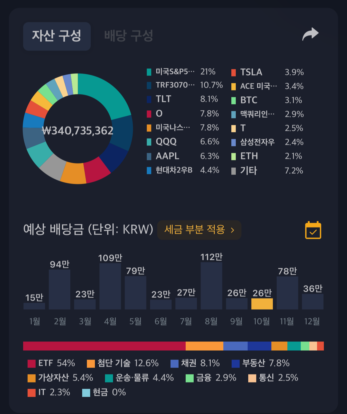 배당금 현황 :