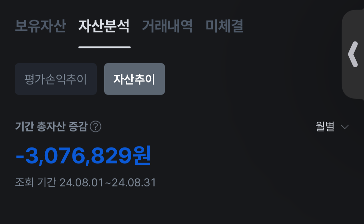 8월달에 코인으로 -300만원이나 찍었네요. ㅠㅜ
