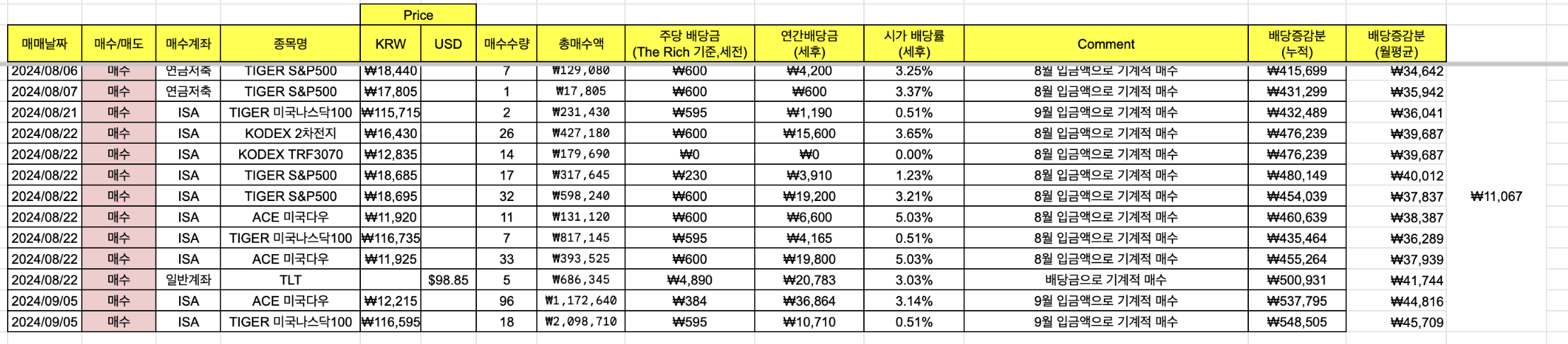8월 9월의 배당금을 정리해 보겠습니다.