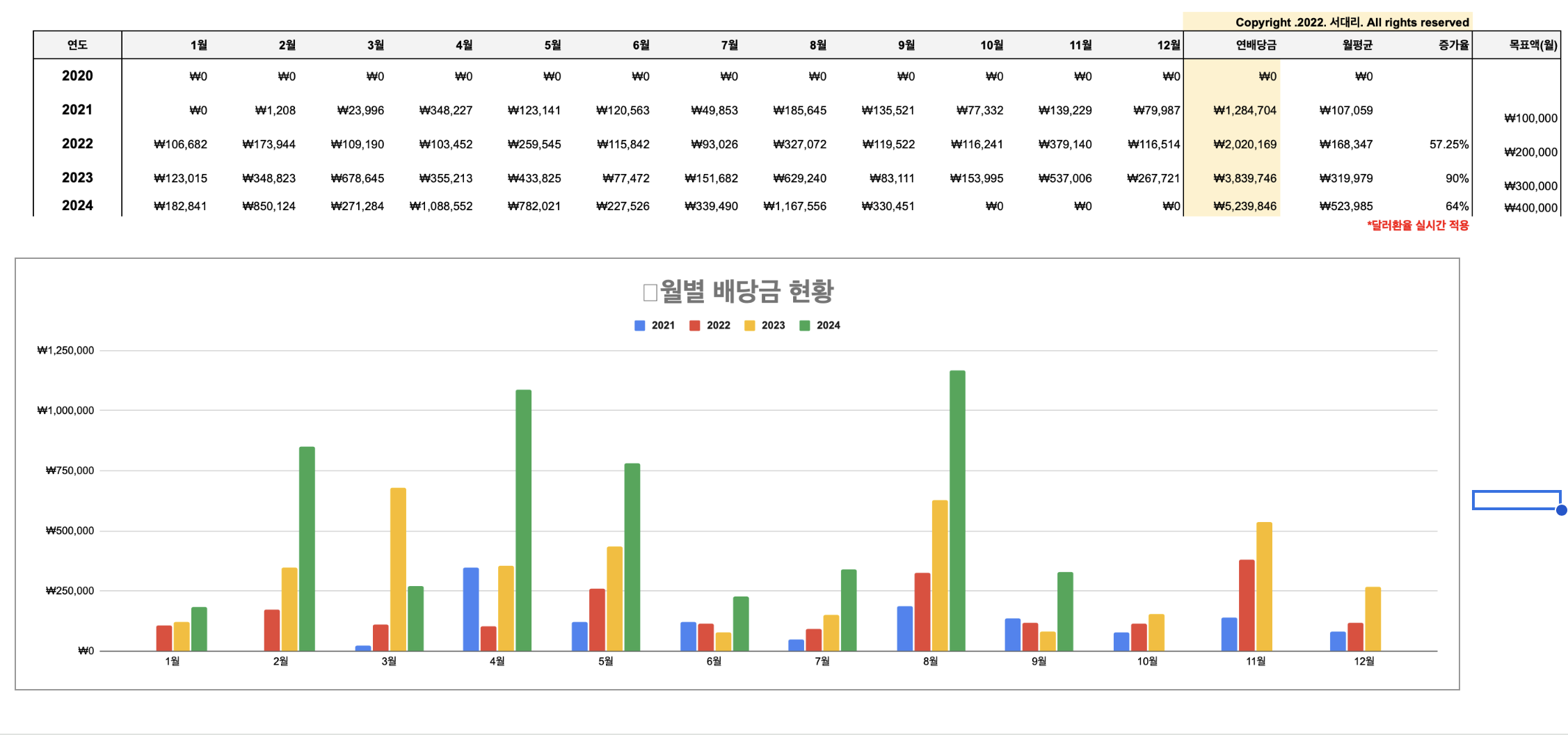 월 평균으로 보면 원래의 목표 대비 30% 초과 달성이지만, 10월 이후에 거지달이 될 것 같은 예상이 들어 어찌되나 한번 쭉 지켜봐야겠습니다.