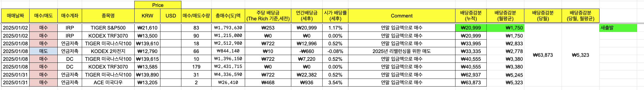 2025년 1월 배당 증가분을 체크해보겠습니다.