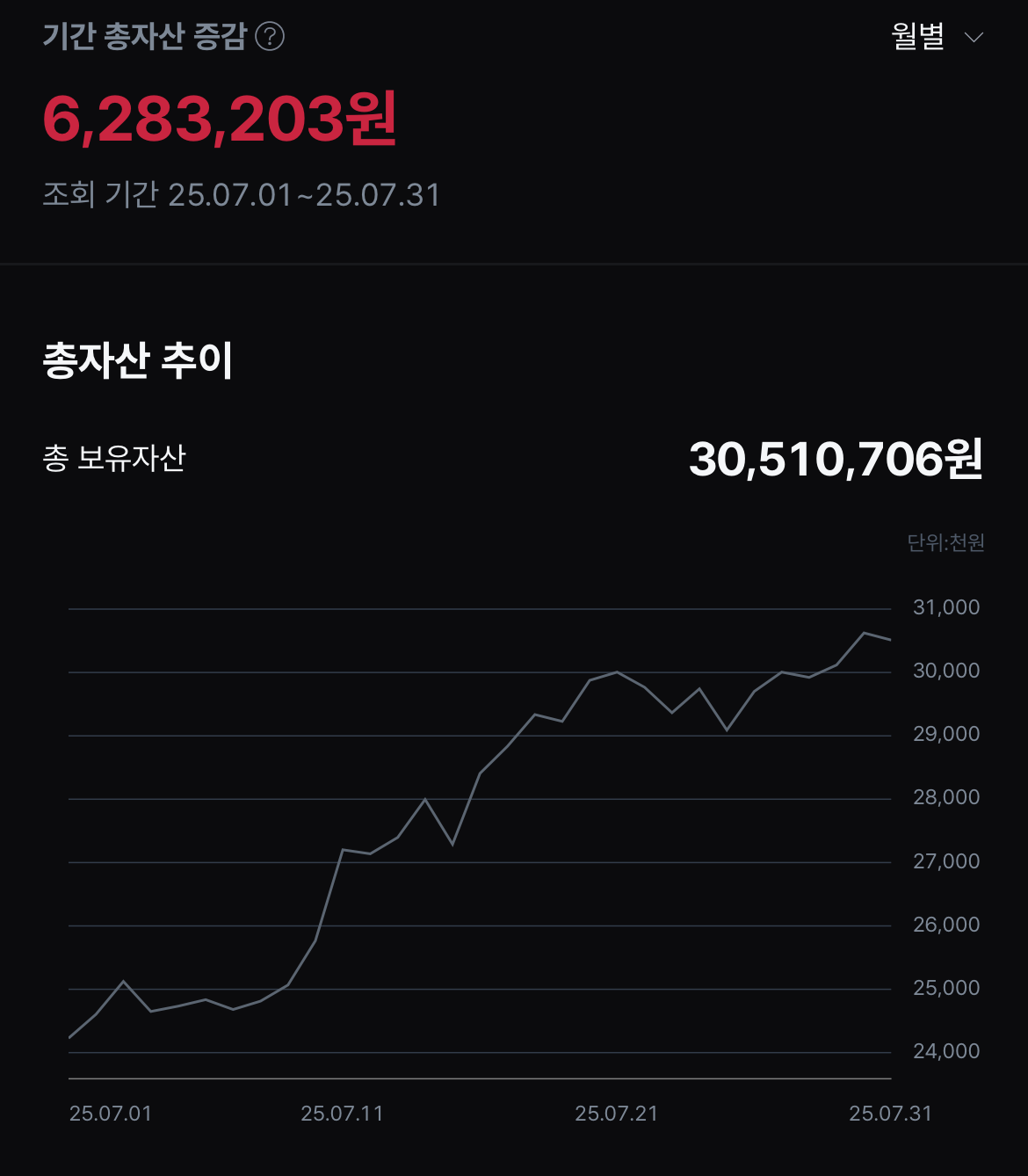 25년 7월 역사상 가장 계좌가 빵빵한 달이 되었습니다.