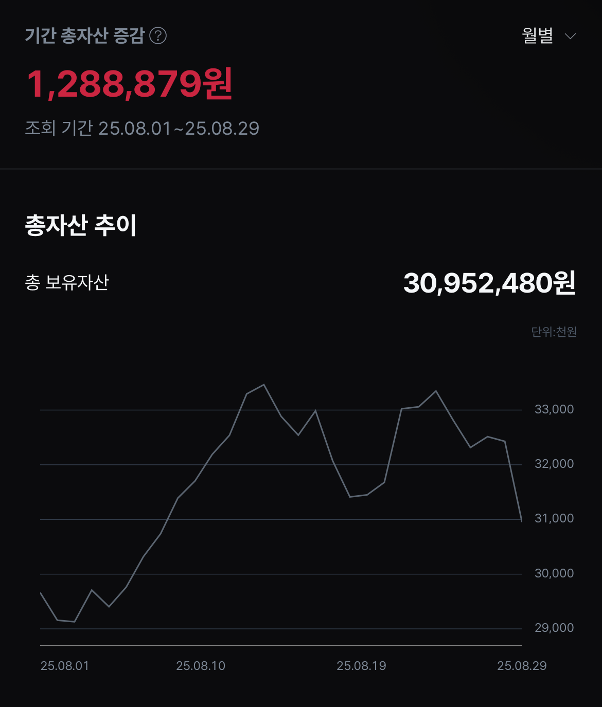 25년도 8월은 좀 횡보한 달인 것 같습니다.