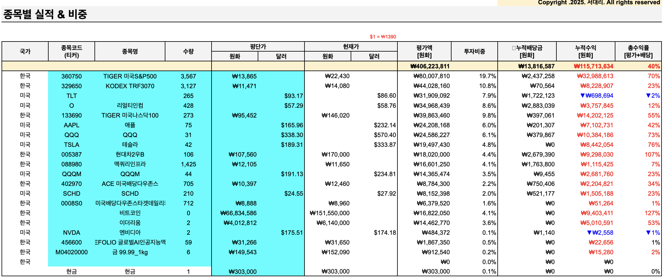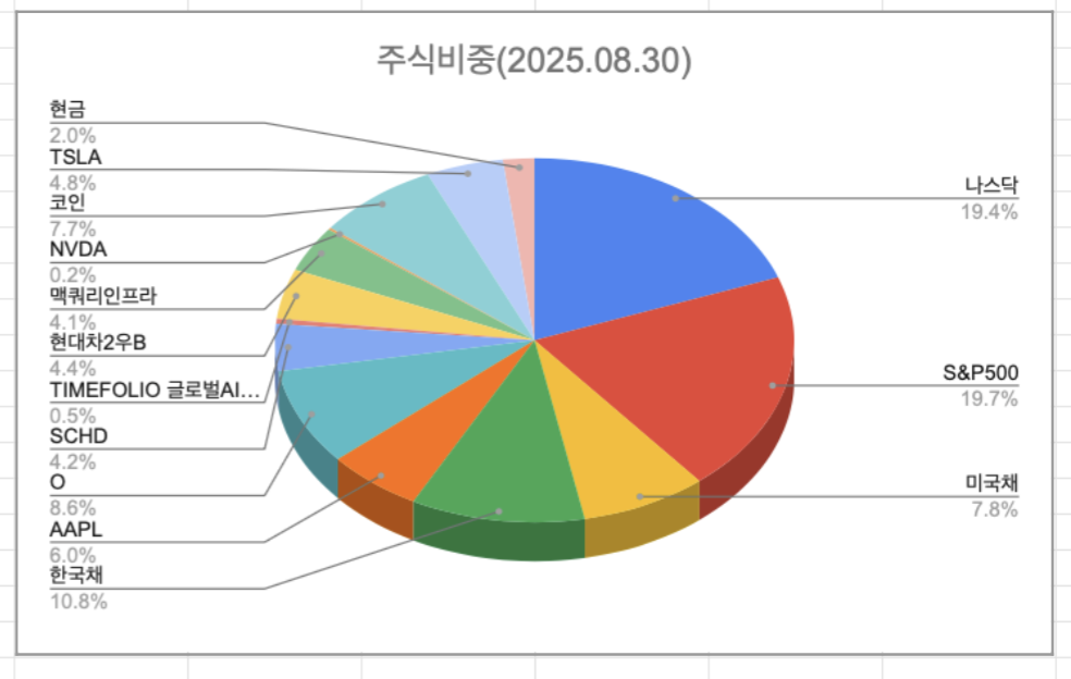 2025년 8월 31일 기준, 제 포트폴리오는 총 4억 817만원 규모로 성장했습니다.