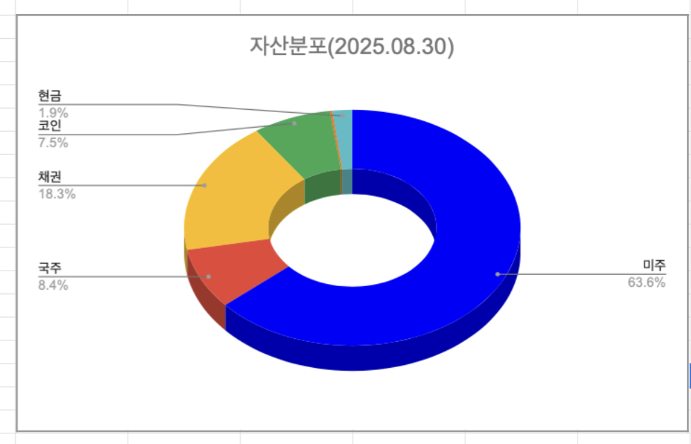 국주가 8.4%, 채권이 18.3%, 코인이 7.5%, 현금이 1.9% 정도 되네요.