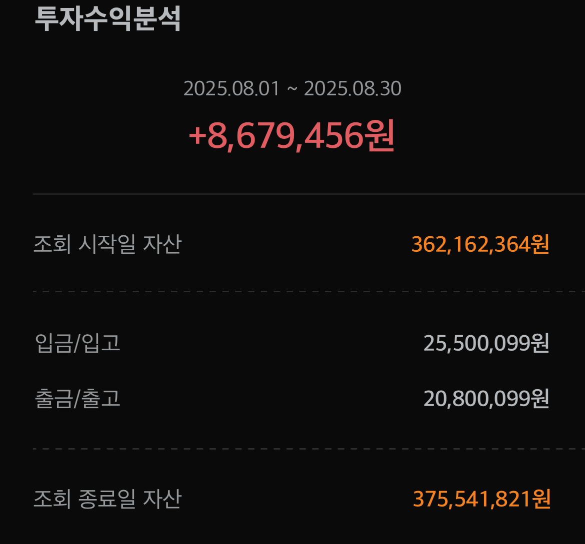 하지만 투자는 기록이 생명이라고 생각해서, 늦었지만 8월 한 달간의 투자 여정을 정리해보려고 합니다.